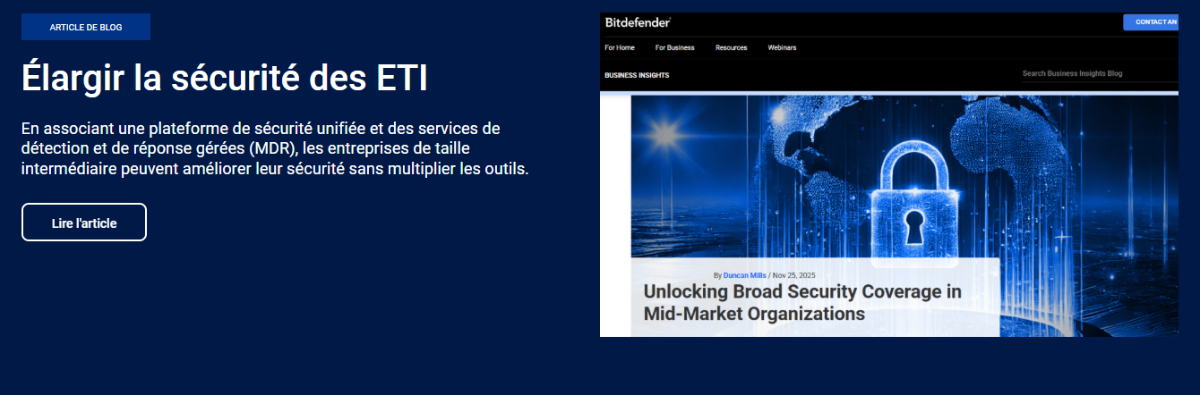 Notre solution intègre Bitdefender GravityZone Business Security, la plateforme de cybersécurité de niveau entreprise qui protège vos systèmes contre les menaces les plus avancées grâce à une approche unifiée.